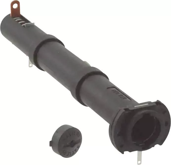 Műszaki adatok: Anyag: Csiszolt nikkel, horganyzott sárgaréz, üvegszállal erősített poliamid · Cellaszám: 3 · Csatlakozó (akku): Forrasztható csatlakozó · Elem méret: Ceruza (AA) · Gyártói szín: Fekete · Méret, hossz: 174.4 mm · Méret, magasság: 24.2 mm · Méret, szélesség: 33.3 mm · További műszaki adatok: Hőmérsékleti tartomány -30 és +70 ° C között · Ház Ø 22,35 mm