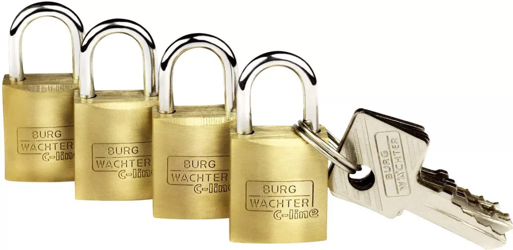 A BURG-WÄCHTER Quadro 222 15 SB hengeres lakat készlet tömör sárgaréz testtel rendelkezik, és szilárd minőséget kínál. A készlet 4db zárat tartalmaz azonos kulccsal és 4db kulcsot.