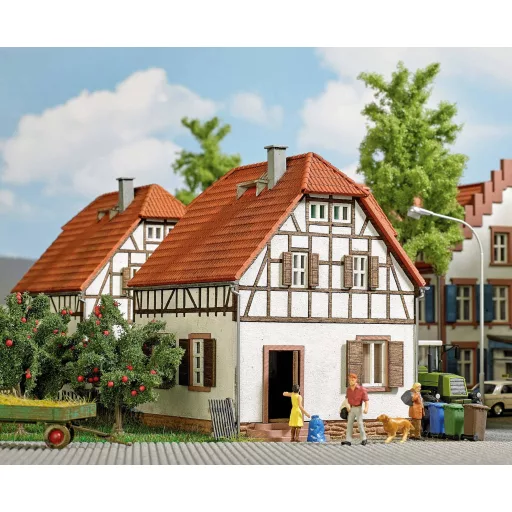 Munkavállaló ház az eredeti alapján Worms-ben, Rajna-vidék-Pfalzban. Az ilyen típusú házak megtalálhatók a ma is ismert és a Kiautschau néven ismert munkástelepülésben. Az 1897-ben alapított "részvénytársaság olcsó lakások építésére szolgált a Rajnai Worms-i Worms munkásai számára". A készletben a váz, az ajtók és redőnyök valódi fából készültek, és már színesek. A természetes kő alapja és a kő lépéseinek reális másolata. A férgek megfelelő utcatáblái a kivágott lapon találhatók. A teljes munkások települése több készlettel ábrázolható. Busch 5998 LED-ekkel világítanak.