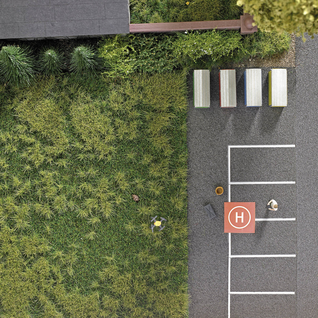 Drónokat használnak a rétek és mezők betakarítás előtti átvizsgálására, hogy az őzgidakat biztonságba helyezzék, és az állati tetemeket megvizsgálják a rendkívül veszélyes sertéspestis szempontjából, mielőtt elszállítanák őket. Pilóta drónnal, őzgidaral, 4 fenyőfával és kivágható lappal a tökéletes jelenettervezéshez.
