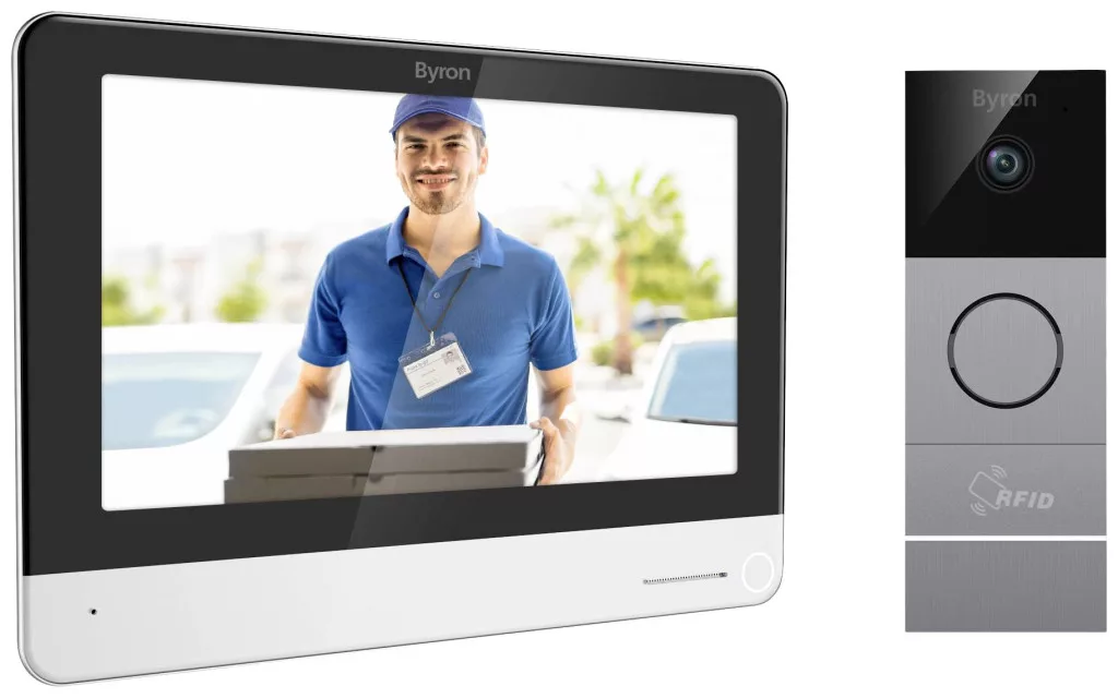 A Byron DIC-23312 Wi-Fi videokaputelefon lehetővé teszi, hogy lásson embereket, és beszélgessen velük az ajtóban. Még ha nincs is otthon, használhatja okostelefonján a BY Home alkalmazást, hogy megnézze, ki csenget az ajtónál. Amikor valaki az ajtóban van, ez a video-intercom pillanatfelvételeket és videókat tud készíteni a látogatókról HD felbontásban, amelyeket a rendszer a monitorra vagy egy microSD-kártyára ment (a microSD-kártya nem tartozék). A videokaputelefon egy csiszolt alumínium külső modult és egy belső 7 hüvelykes érintőképernyőt tartalmaz. Ez a Byron Wi-Fi videó kaputelefon integrált RFID rendszerrel rendelkezik, amely lehetővé teszi a bejárati ajtó vagy a kapu kinyitását egy RFID címke használatával.