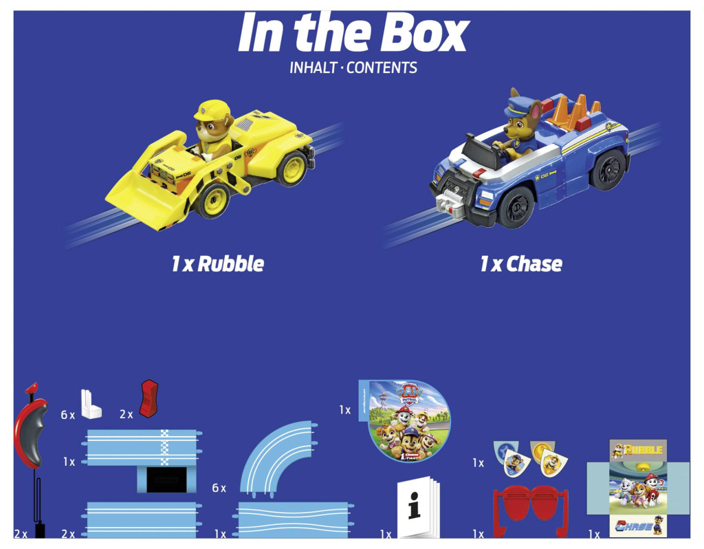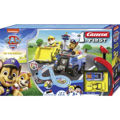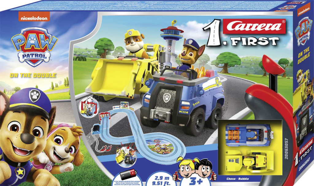 Carrera FIRST MANCS őrjárat szett Pályahossz: 2,9 m 3 éves kortól Ergonomikus kézivezérlők, kifejezetten gyermekek kezébe tervezve Elemmel működő Segítségre kész! Chase és Rubble új küldetéseket hajtanak végre a Carrera FIRST PA W Patrol - On the Double készletben. A 2,9 méter hosszú Carrera FIRST versenypályán már a legkisebbek is, 3 éves kortól, izgalmas kalandokra indulhatnak a Mancs őrjárat sorozat kutyáival. Chase kék rendőrautójával, Rubble pedig sárga buldózerével segít, ahol csak tudnak – legyen szó akár fákon lévő macskák megmentéséről, akár vonatok kiszabadításáról, bármi lehetséges. Az elemes, világoskék nyerőgép-pálya tökéletes útközbeni használatra. A keskeny átjáró, a kanyarok és a kanyargós elemek fokozzák a szórakozást. A készlet 2 járművet tartalmaz: MANCS őrjárat - Üldözés, MANCS őrjárat - Törmelék. Körbekerítés a szórakoztató ütközésekhez. Fordítóelemek az extra szórakozásért. Versenypálya gyerekbarát színekben. Elemmel működik (* 4x C elem szükséges nem tartozék). Akár 6 órás játékidő. Könnyen használható. Tematikus díszítőelemek. Vonzó csomagolás. Ha még többet szeretnél megtudni MANCS őrjárat hőseidről, nézz körül MANCS őrjárat témájú világunkban!