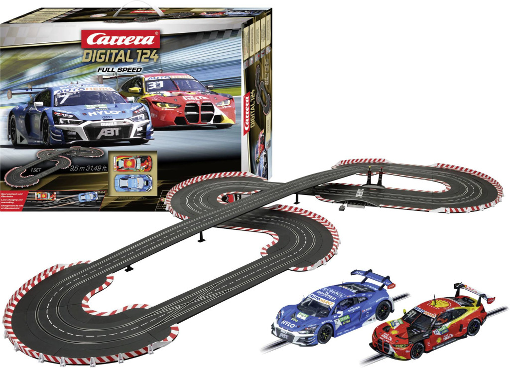 Túraautó fényképezés 1:24 méretaránybanA Carrera DIGITAL 124 " Full Speed" szettben teljes gázzal mehetsz 1:24 méretarányú túraautóddal! Az Audi R8 LMS GT3 evo II „Team Abt Sportsline, No.7” egy álomautó minden motorsport iránt érdeklődő számára. A korábbi GT3-bajnok Ricardo Feller az Allgäu Racing Team volánjánál ül a DTM-ben. Első DTM-szezonjában versenysikert ért el Imolában. Versenyzője az autóversenypályán a piros-sárga BMW M4 GT3 „Schubert Motorsport, No.31”, a dél-afrikai Sheldon van der Linde autója, aki a 2022-es szezonban ezzel a járművel megnyerte az összesített DTM-et.