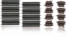 Szállítás tartalma: 8 db egyenes 342 mm · 4 db 1/45 fokos kanyar · 4 db 1/45 fokos meredek kanyar oszlopokkal.