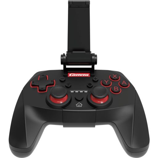 Éld át a versenyzés élményét új szinten a Carrera Hybrid Controllerrel! A vezérlő kompatibilis az összes Carrera Hybrid járművel, Bluetooth-on keresztül csatlakozik az okostelefonodhoz, amelyen a Carrera Hybrid alkalmazás fut. Az okostelefon kényelmesen rögzíthető a kontrollerre – az igazi játékélményért. Élvezd a maximális kontrollt a precíz kormányzásnak köszönhetően, és tartsd nyilván a járműveddel és a versenyeddel kapcsolatos összes információt.