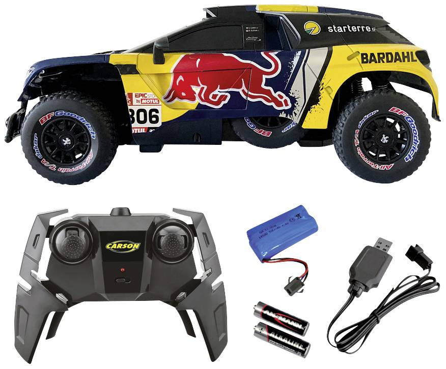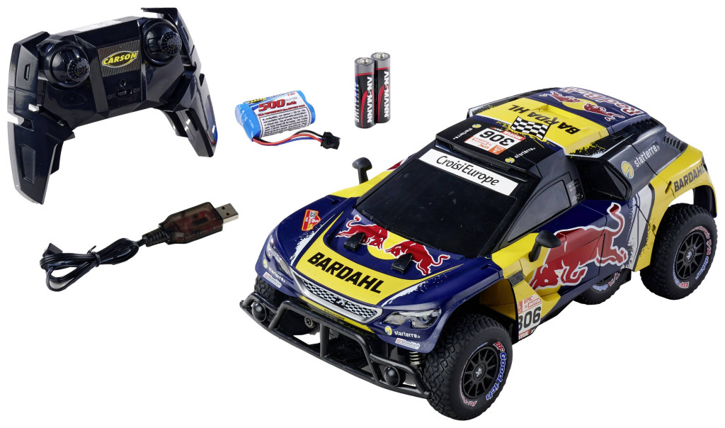 Az 1:16 RC Peug.Rally 3008 DKR a tökéletes versenyzést ígéri! A vezetésre kész modell lehetővé teszi a motorsport rajongók számára, hogy a kicsomagolás után azonnal elmerüljenek a kalandban. Az erős Li-Ion meghajtó akkumulátorral, az LR06 AA jeladó elemekkel és a készletben található utasításokkal a 100%-os RTR szórakozás garantált. A részletekre való egyedi odafigyeléssel és a precíz kidolgozással a modell minden RC-rajongó és a klasszikus autómodellek szerelmese számára kötelező. A jármű technológiája lenyűgöző sebességgel és rendkívül precíz irányíthatóságával nyűgöz le. Az " 1:16 RC Peug.Rally 3008 DKR" minden otthonba hoz akciót!