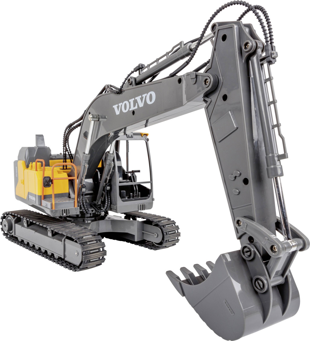 A távirányítású Volvo lánctalpas kotrógép 1:16 méretarányban sokoldalú RC munkagép, számos funkcióval, például a karosszéria 360 fokos elforgatásával. Erőteljes láncmeghajtás felpörgeti a lánctalpas kotrót, a markolókart és a kotró lapátját a 2,4 GHz-es többcsatornás távirányítóval lehet működtetni. A kotró lapátja legfeljebb 200 g súlyt képes megemelni. A be- és kikapcsolható motor, a vezetési hang és a világítás igazi érzést nyújt az építkezésen. A nagy teljesítményű nikkel-fém-hidrid akkumulátor 40 perc vezetési élményt nyújt 3 órás töltési idő mellett. A Volvo márkájú RC lánctalpas kotrógépet problémamentes 2,4 GHz-es távirányítóval, adó-akkumulátorokkal, meghajtó-akkumulátorral és USB-töltővel szállítják, és a töltés után azonnal használatra kész. Vásárlás - Betöltés - Hajtás!