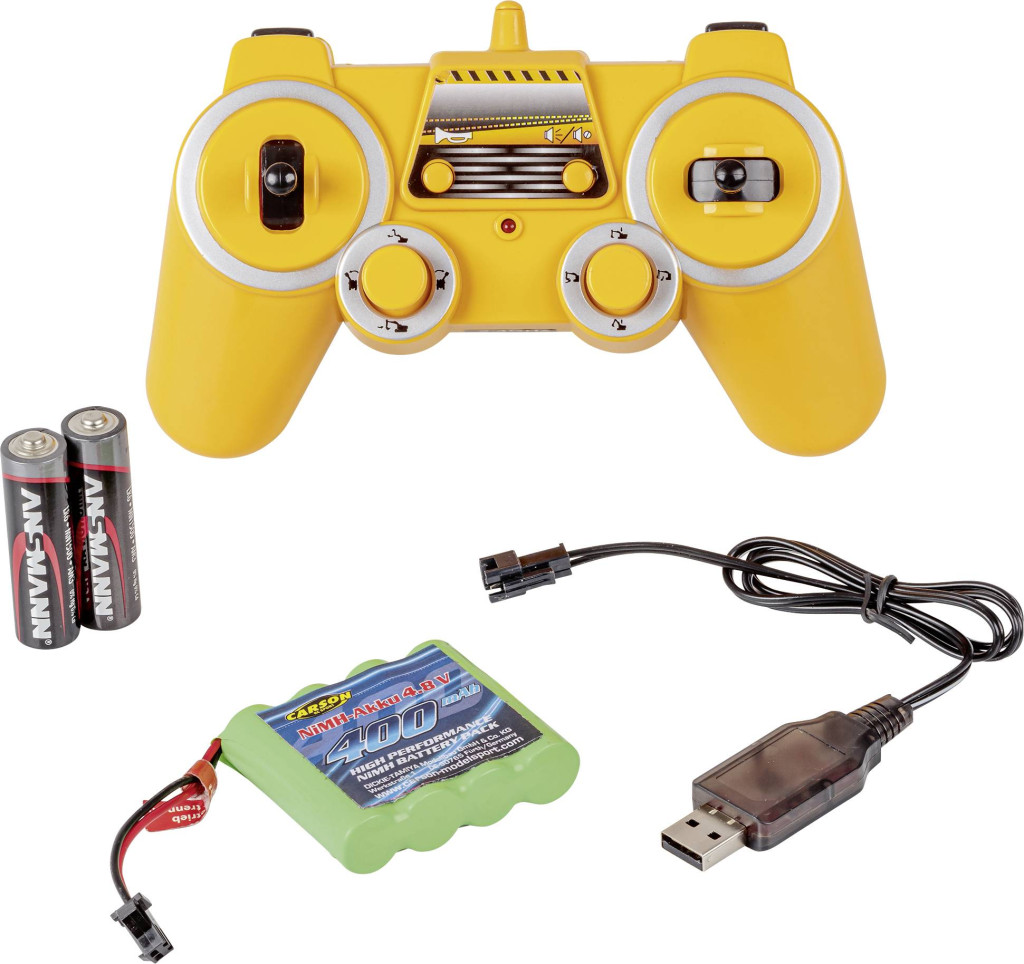 Szállítás tartalma: Vezetésre kész modell, 2,4 GHz-es távirányító, Ni-MH meghajtó akkumulátor 4,8 V / 400 mAh, USB töltőkészülék, 2 db LR06 / AA adóelem, Használati útmutató