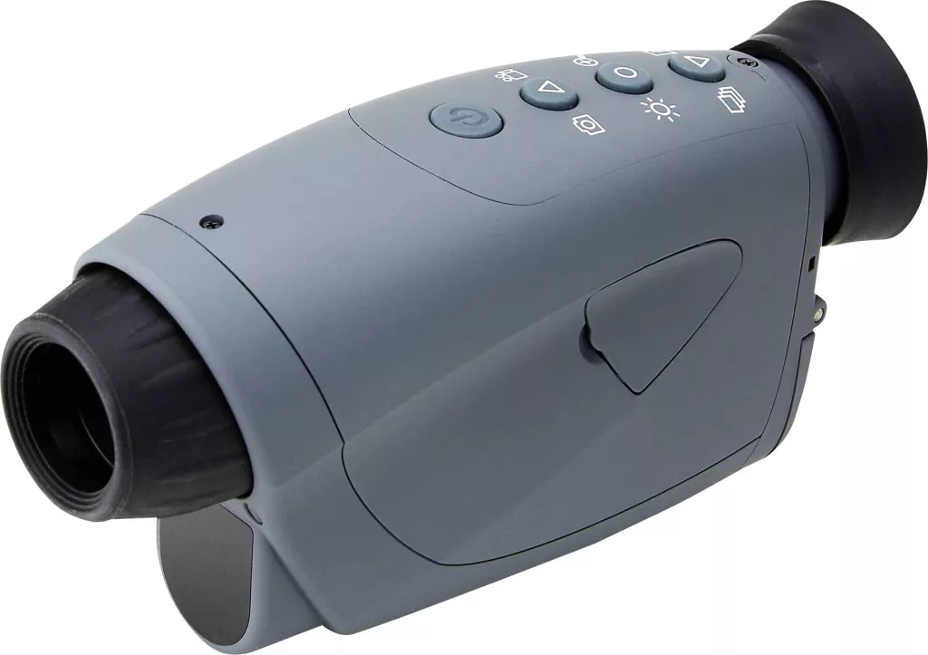Műszaki adatok: Felbontás: Video: 640 x 480 pixel · Generáció: Digital · Infra kiegészítő fény: Igen · Kivitel (optika): Monokuláris · Látószög: 10 ° · Max. megfigyelési távolság: 120 m · Méret, magasság: 63.5 mm · Méret, mélység: 12.5 mm · Méret, szélesség: 30.5 mm · Nagyítás: 2 x · Súly: 128 g · További műszaki adatok: Szín: kék / fekete · Tápellátás: 3 db mikroelem