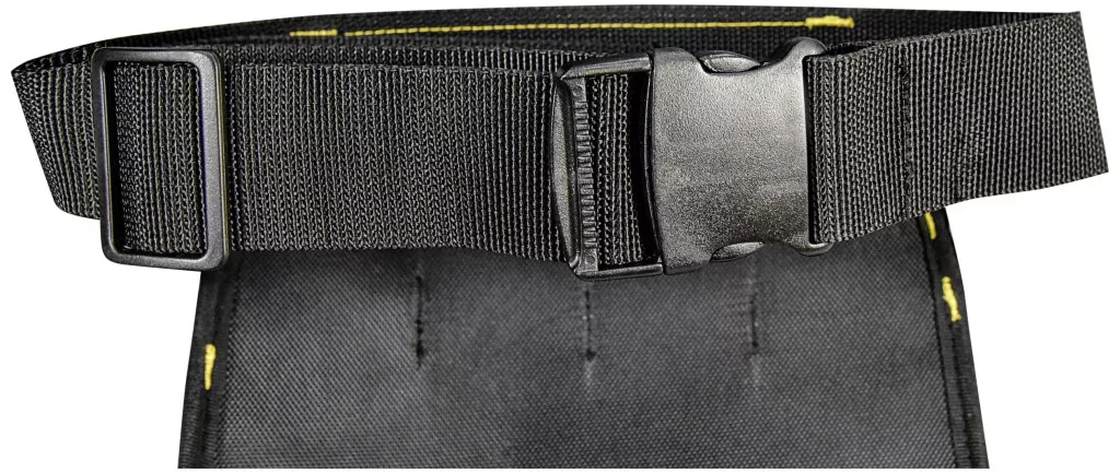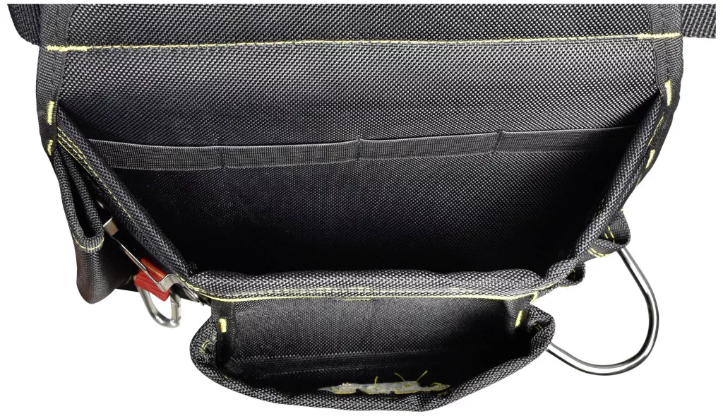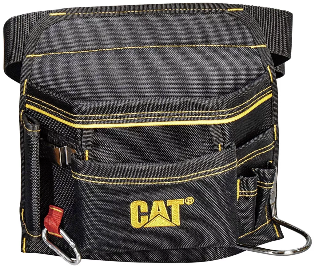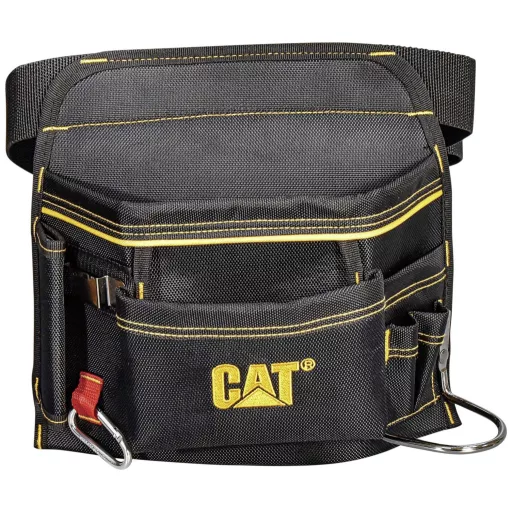 A CAT szerszámos öv Professional különböző méretű zsebeket, kalapácshurkot, ácsnégyzet hurkot és 4 rugalmas belső rekeszt kínál különféle tárgyak tárolására.