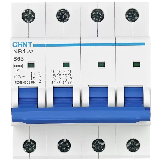 Műszaki adatok: Gyártói szín: Kék, Fehér · Kikapcsolás: 6 kA · Kioldási karakterisztika: B · Méret, magasság: 86 mm · Méret, mélység: 78 mm · Méret, szélesség: 72 mm · Névleges feszültség: 240 V, 415 V · Névleges áram: 25 A · Pólusszám: 4 · Szigetelési osztály: II, III