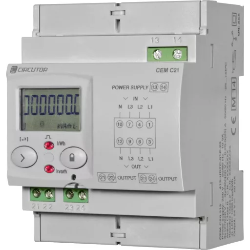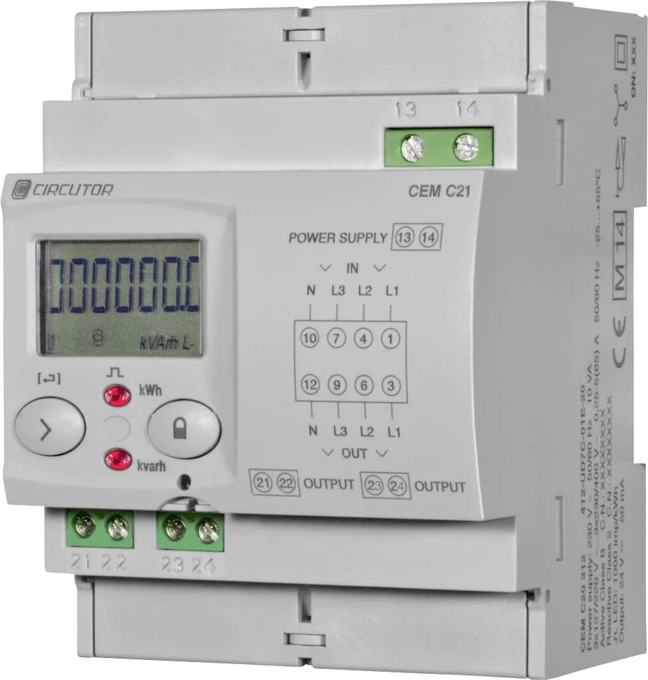 A CIR-C21 CIRCUTOR egyfázisú mérők minden típusú rendszer energiafogyasztásának szabályozására. Az energia rögzítésére, elosztására és számlázására szolgáló energiamérők lehetővé teszik, hogy mindig tudja, hol, hogyan és mennyi energiát használ fel, és információt nyújt Önnek ahhoz, hogy javító intézkedéseket hajtson végre az energiaellátás javítása és a nem hatékony fogyasztás érdekében a a rendszer Kerülje a terhelést. CIRCUTOR A CEM-C21 egyfázisú energiamérők ideális megoldást jelentenek azoknak a többfelhasználós rendszereknek, ahol a költségeket egyenként kell áthárítani, mivel a végfelhasználónak vagy bérlőnek magának kell viselnie az energiafogyasztás költségeit.
