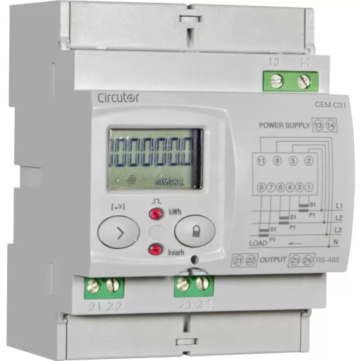A CIR-C31 CIRCUTOR egyfázisú mérők minden típusú rendszer energiafogyasztásának szabályozására. Az energia rögzítésére, elosztására és számlázására szolgáló energiamérők lehetővé teszik, hogy mindig tudja, hol, hogyan és mennyi energiát használ fel, és információt nyújt Önnek ahhoz, hogy javító intézkedéseket hajtson végre az energiaellátás javítása és a nem hatékony fogyasztás érdekében a a rendszer Kerülje a terhelést. CIRCUTOR A CEM-C31 egyfázisú villanyórák ideális megoldást jelentenek azoknak a többfelhasználós rendszereknek, ahol a költségeket egyenként kell áthárítani, mivel a végfelhasználónak vagy bérlőnek magának kell viselnie az energiafogyasztás költségeit.