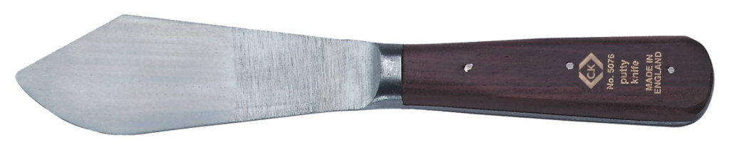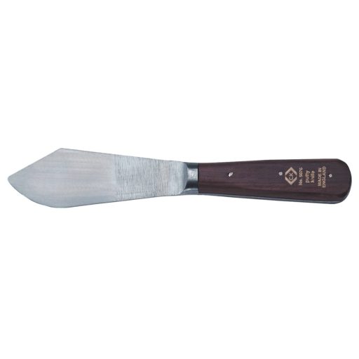 Jó minőségű rugóacél lap biztosítja a szilárdságot és a flexibilitást. Clip-Point profilú késsel simítjuk el és formázzuk a gittet. Rózsafa nyél