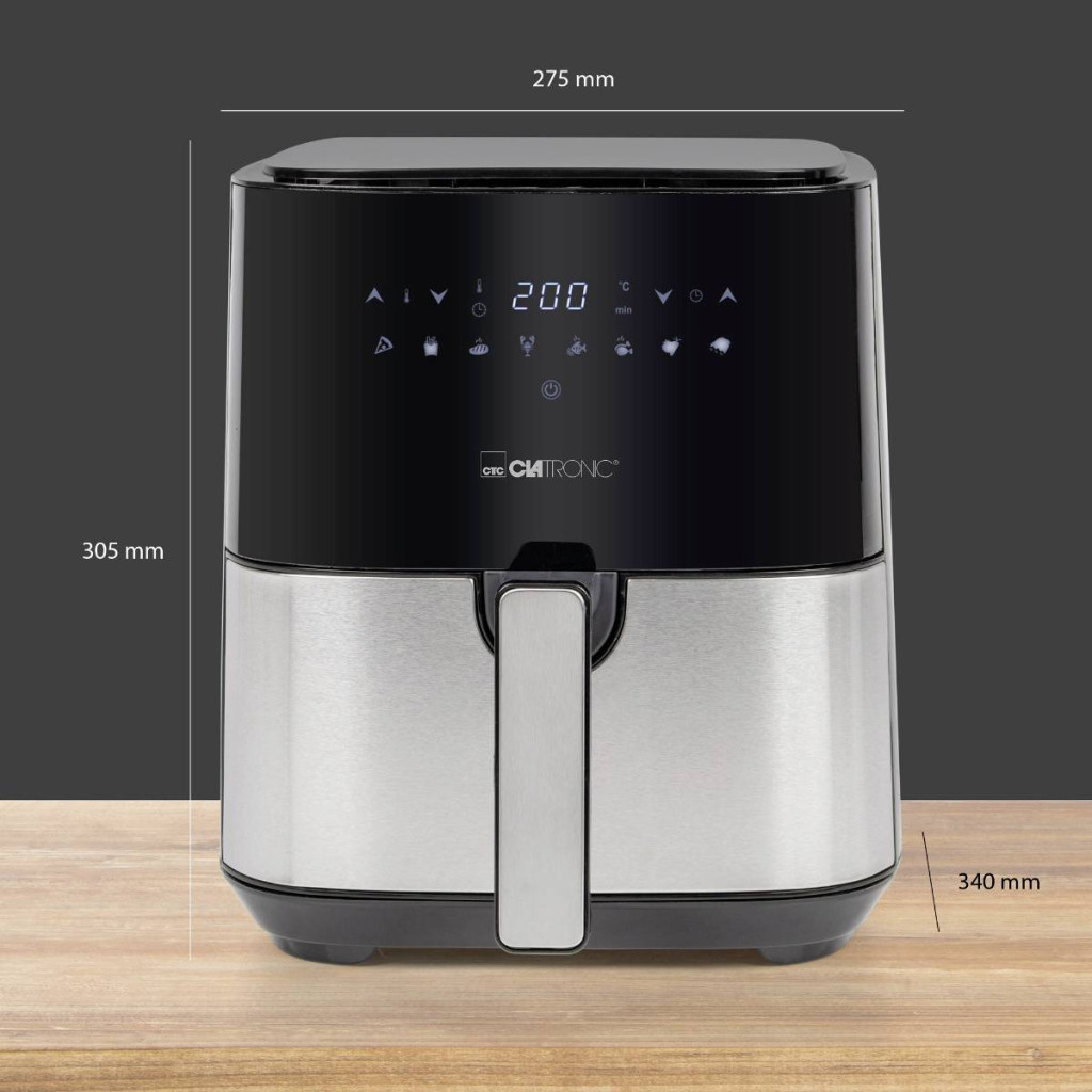 Élvezze az egészséget – a Clatronic XXL forrólevegős olajsütőjével olyan ételeket fogyaszthat, mint a sült krumpli, csirke rögök vagy halak, amelyek teljesen olaj- és zsírmentesek. Az extra nagy, 5 literes kapacitásnak köszönhetően a forró levegős sütő az egész család számára is tökéletes.