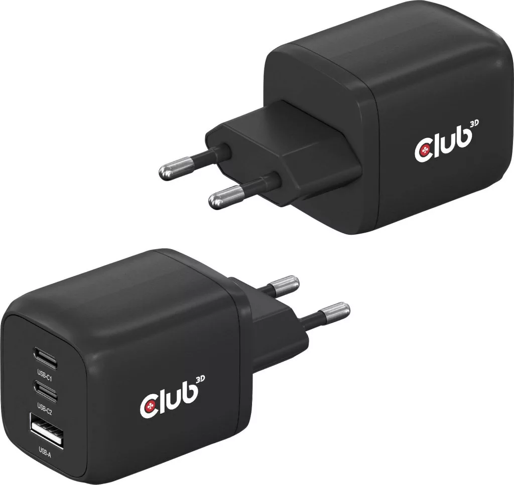 CLUB3D utazási töltő PPS 65 Watt GAN technológia, hármas port (2x USB Type-C + USB Type-A) Power Delivery (PD) 3.0 támogatás