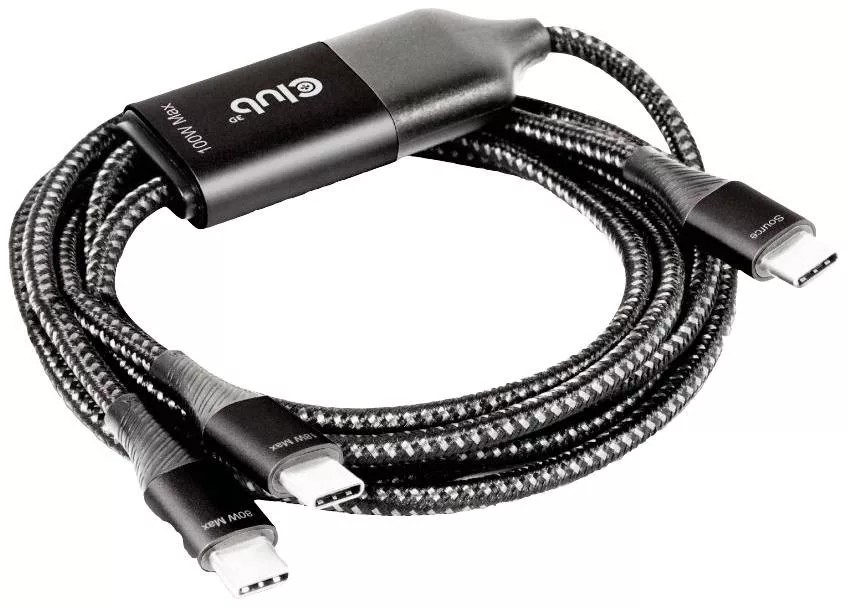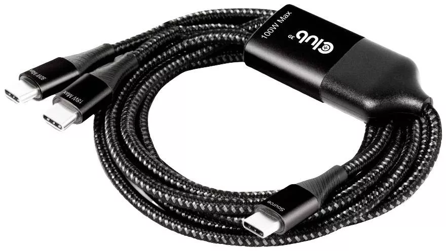 CLUB3D USB Type-C, Y töltőkábel 2x USB Type-C max 100W, 1,83m/6ft M/M