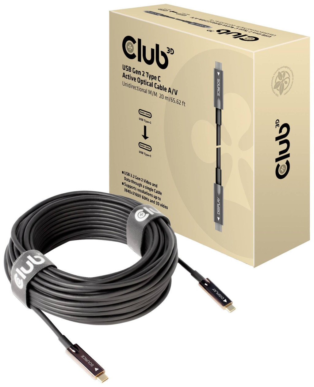 CLUB3D USB Gen 2 C típusú aktív optikai kábel A/V egyirányú M/M 20 m/ 65,62 láb