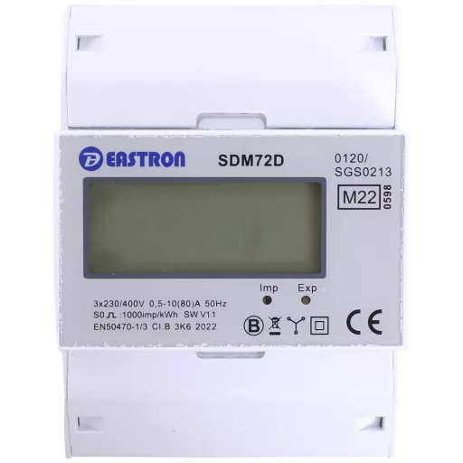 Háromfázisú mérő 10(80)A, MID, S0 impulzus kimenettel kalibrálva