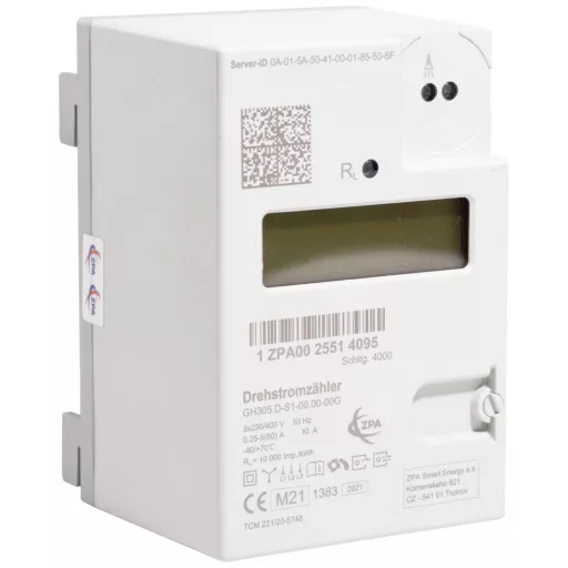 Műszaki adatok: Frekvencia: 50 Hz · Gyártói szín: Fehér · Hálózati feszültség (max.): 400 V/AC · Hálózati feszültség (min.): 230 V/AC · Kijelzés: 6 számjegyű LC kijelző · Kijelző (digitális/mechanikus/analóg): digitális · MID konform: Igen · Méret, hossz: 93 mm · Méret, magasság: 135 mm · Méret, szélesség: 90 mm · Pontossági osztály: A/B · Saját fogyasztás: - Aktív teljesítmény az Un