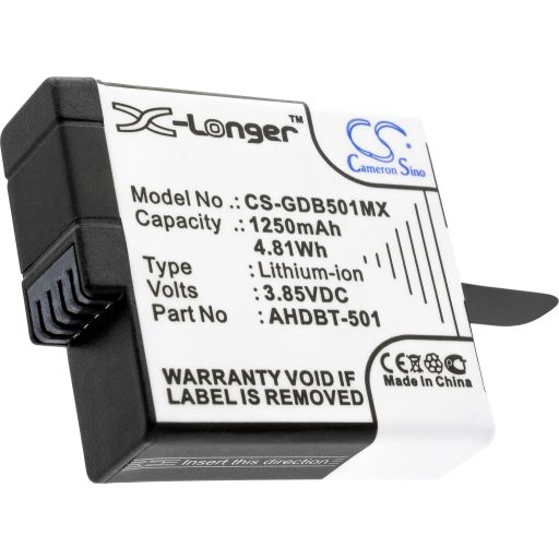 Műszaki adatok: A következő márkákhoz alkalmas: GoPro · Alkalmas kamera modellekhez: GoPro Hero HD 5, GoPro Hero HD 6 · Elem- és akku csoport (csak keresőhöz): Egyéb · Elem- és akkuméret: Speciális akku · Elem-/akkutechnológia: Lítiumion · Feszültség: 3.85 V · Gyártói szín: Fekete · Kapacitás (mAh, Ah): 1250 mAh · Megfelelő eredeti akku (kamera): 3661169, AABAT-001, AHDBT-501 · Újratölthető: Igen