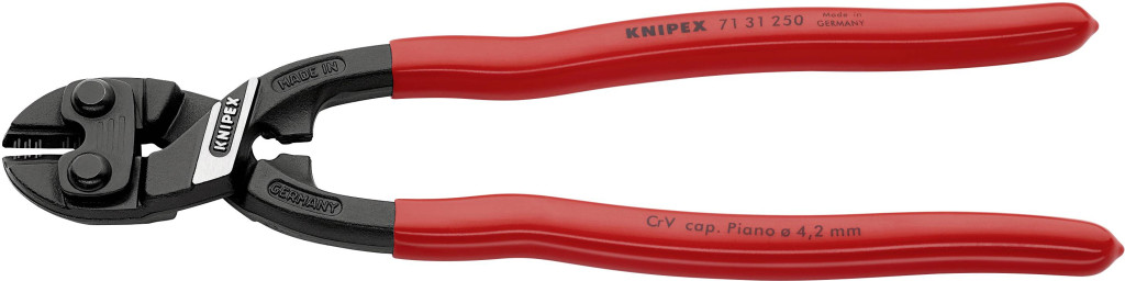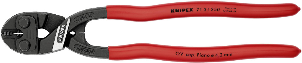 Műszaki adatok: Max. vágási érték, közepesen kemény drót: 6 mm · Méret, hossz: 250 mm · Súly: 465 g · Típus (kategória): Csapszegvágó · Vágási érték (max.) kemény drót: 4.3 mm · Vágási érték (max.), zongorahuzal: 4.2 mm · Vágóerő: 64 HRC