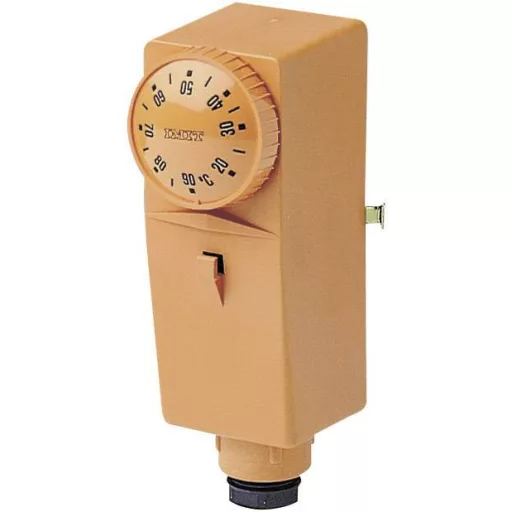 Ezzel a termosztáttal a fűtő- vagy melegvíz rendszer hőmérsékletét közvetlenül a csővezetékben lehet nyilvántartani és így fáradságos érzékelő vezetékelés nélkül lehet megvalósítani egy hőmérséklettől függő szivattyút vagy máneses szelepvezérlést. Vagy használhatja a termosztátot hőmérséklet felügyeletként, ami fűtéskiesés esetén biztonságosan oldja ki a rákapcsolt riasztó rendszert. ENEC tanusítvánnyal és CE jelöléssel.