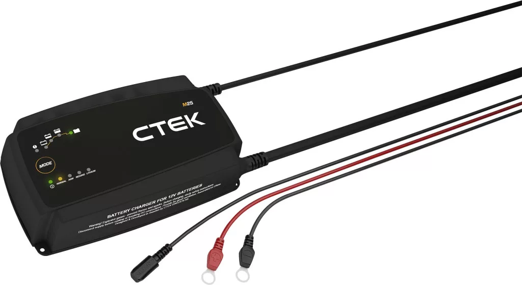 Számos funkcióval rendelkezik, beleértve a mélykisült folyékony és Ca/Ca akkumulátorok helyreállításának helyreállítási üzemmódját, valamint egy hőmérséklet-érzékelőt, amely optimalizálja a töltési folyamatot +25 ºC-tól eltérő hőmérsékleten. Lítium* üzemmóddal is rendelkezik a lítium* akkumulátorokhoz. Az M25-höz egy hosszú, 4 m-es kábel M10-es gyűrűs kapcsokkal van ellátva, hogy megkönnyítse a hajó felszerelését. *) 12 V-os lítium akkumulátorok (LiFePO4, Li-Fe, Li-ion, LFP)