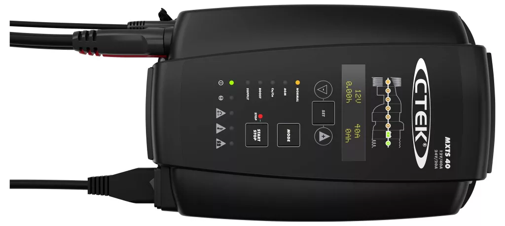 . A 8 fokozatú töltési folyamat folyamatjelzőjén kívül az MXTS 40 egy könnyen leolvasható OLED kijelzővel is rendelkezik, amely a fontos töltési paramétereket mutatja, mint például az áramerősség, a feszültség és az újratöltési kapacitás. Felújítási móddal rendelkezik a mélyen lemerült akkumulátorok helyreállításához, valamint hőmérséklet-érzékelővel, hogy optimalizálja a töltési folyamatot minden időjárási körülmény között. Az MXTS 40-et úgy tervezték, hogy megvédje a jármű elektronikáját, és tartós polikarbonát házzal rendelkezik a zord környezetekhez. A készülék kombinálható az opcionális WALL HANGER PRO-val és a TROLLEY PRO-val a biztonságos tárolás és a maximális hordozhatóság érdekében.