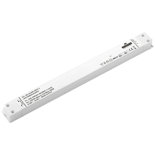 Műszaki adatok: Bemenetek: 1 x · Bemeneti feszültség (max.): 264 V/AC · Bemeneti feszültség (min.): 180 V/AC · Certifikációk: MM SELV TÜV UKCA · Csatlakozó (építőelem): Csavaros kapocs · Gyártói szín: Fehér · Hőmérséklet (max.): 45 °C · Hőmérséklet (min.): -20 °C · Kimenetek száma: 1 x · Kimeneti feszültség (max.): 24 V/DC · Kimeneti áram (max.): 4.17 A · Kivitel (LED meghajtó): Állandó feszültségű · LED meghajtó jellemzők: Túlterhelés elleni védelem, Túlfeszültség kategória,, Bútorhoz alkalmas · Méret, hossz: 320 mm · Méret, magasság: 19 mm · Méret, szélesség: 30 mm · Súly: 170 g · Teljesítmény (max.): 100 W · Tápegységtípus: Kapcsolóüzemű tápegység · Védelmi osztály: IP20 · Védelmi típus: IP20 · Üzemi feszültség: 240 V/AC