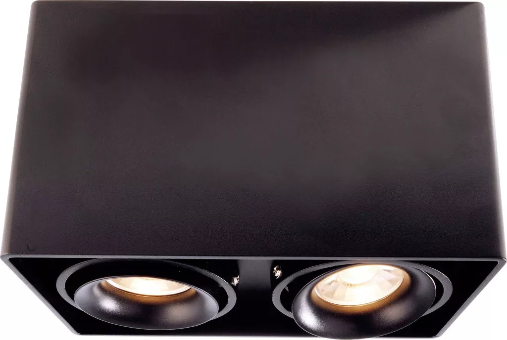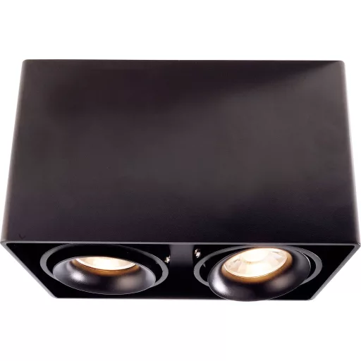 Műszaki adatok: 2021-es energiahatékonysági osztályok: n.rel. · Anyag: Alumínium · Foglalat: GU10 · Forgási tartomány, max.: 45 ° · Fényforrások száma: 2 · Fényforrással: Nem · Gyártói szín: Fekete · Kivitel (lámpa): Derékszögű · Méret, hossz: 93 mm · Méret, magasság: 120 mm · Méret, szélesség: 186 mm · Súly: 1212 g · Védelmi osztály: I · Védelmi típus: IP20 · Üzemi feszültség: 230 V