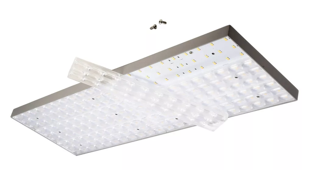 Műszaki adatok: 2021-es energiahatékonysági osztályok: E (A - G) · Anyag: Alumínium öntvény · Energiafogyasztás: 72 kW/1000 óra · Foglalat: Fixen beépített LED-es · Fényforrás típus: SMD LED · Fényforrások száma: 198 · Fényszín: 4000 K · Fényszín (fényforrás): Melegfehér, Semleges fehér · Fényáram összesen: 8215 lm · Fényáram/fényforrás (lumen): 41.48 lm · Gyártói szín: Alumínium fehér (RAL 9006) · Kivitel (lámpa): Derékszögű · Méret, hossz: 577.6 mm · Méret, magasság: 71 mm · Méret, szélesség: 188.6 mm · Súly: 2634 g · Tanúsító kód, EEK: 862883 · Teljesítmény: 72 W · Teljesítmény fényforrásonként: 0.36 W · További műszaki adatok: Teljesítmény: 45W/ 55W/ 72W