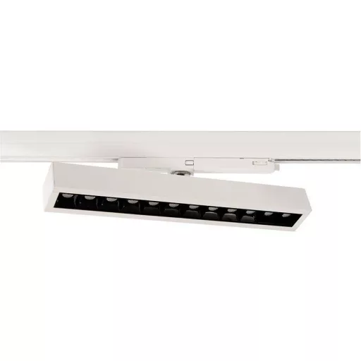 Műszaki adatok: 2021-es energiahatékonysági osztályok: E (A - G) · Anyag: Alumínium · Energiafogyasztás: 34 kW/1000 óra · Foglalat: Fixen beépített LED-es · Fényforrás típus: LED · Fényszín: 3000 K · Fényszín (fényforrás): Melegfehér · Fényáram összesen: 3114 lm · Gyártói szín: Fehér · Helyiség: Dolgozószoba, Ipar/kézműipar · Lámpa jellemzők: Forgatható, Dönthető · Méret, magasság: 49 mm · Méret, szélesség: 36 mm · Tanúsító kód, EEK: 1004913 · Teljesítmény: 34 W · További műszaki adatok: Kivágási átmérő (mm): · Alaphossz (mm): 195 · Aljzat szélessége (mm): 30 · Talapzat magassága (mm): 50 · Beépített edény átmérője 1 (mm): · Fényforrás: fényforrással együtt · Színvisszaadás Ra: 80 · Fényerősség: 8792 cd · Élettartam: 30000 óra · Kapcsolási ciklusok: 15000 · Sugárzás eloszlása: 606 nm · LED-ek száma: 12 · LED típus: SMD · Csatlakozási lehetőség: adapter · Tápegységek: LED tápegységgel · Dőlésszög: 25 ° · 2. anyag: műanyag · Optika 2: átlátszó / átlátszó · Védelmi osztály: II · Védelmi típus: IP20 · Üzemi feszültség: 220 V/AC, 240 V/AC