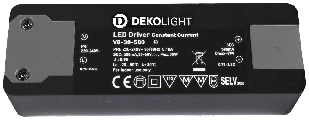 Deko-Light LED tápegység, BASIC, CC, V8-30-500mA/30W, 220-240V AC/50-60Hz, 30-60V DC