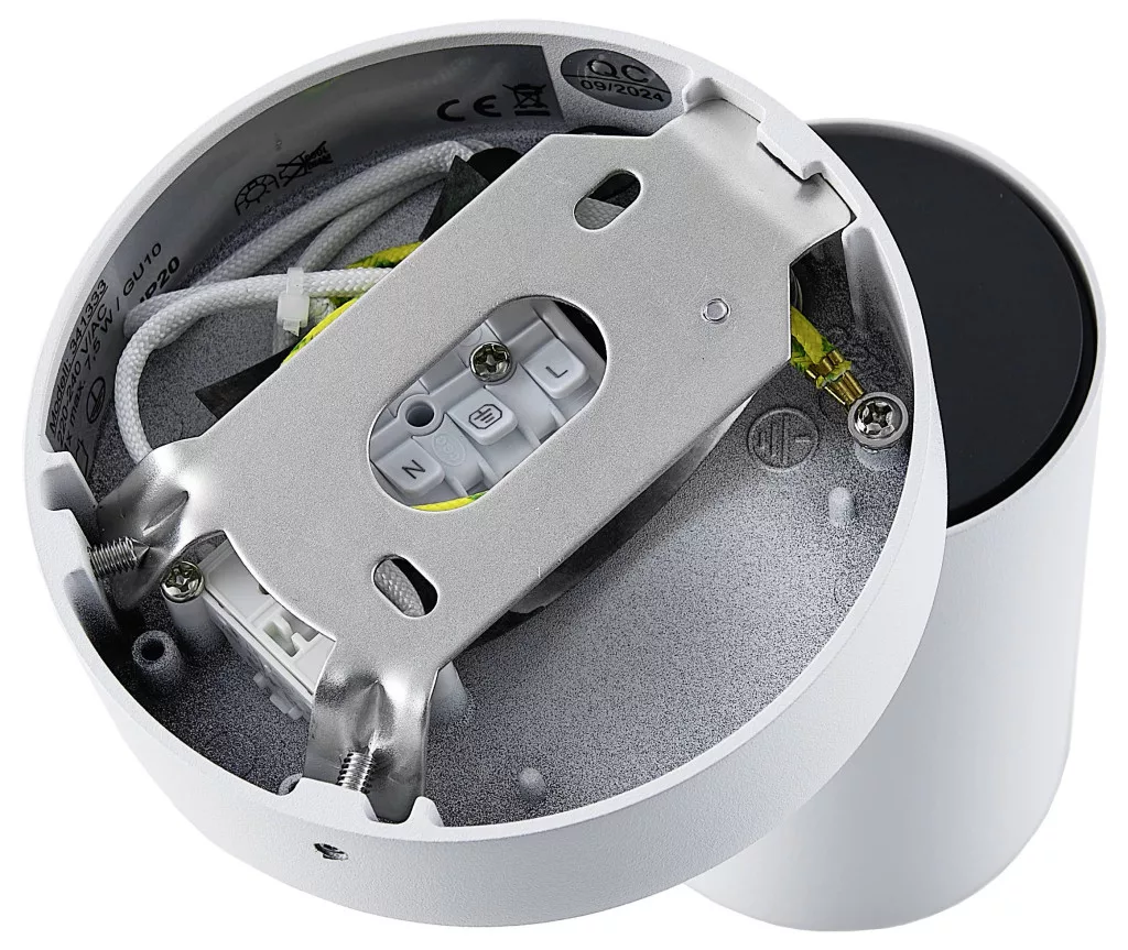 Technical specifications: 2021-es energiahatékonysági osztályok: n.rel. · Anyag: Alumínium · Foglalat: GU10 · Fényforrások száma: 1 · Fényforrással: Nem · Kivitel: Kerek · Méret, magasság: 105 mm · Méret, mélység: 102 mm · Sugárzási szög: 90 ° · Szín: Fehér · Teljesítmény: 7.5 W · További műszaki adatok: Fény kilépő felületek iránya: alsó · Dimmelhető: igen · Vezérléstechnika: Opcionális fényforrással szabályozható · Forgatási és elforgatási tartomány: Forgatható Elforgatható · Forgatási szög: 355 fok · Védelmi típus: IP20 · Átmérő: 60 mm · Üzemi feszültség: 230 V