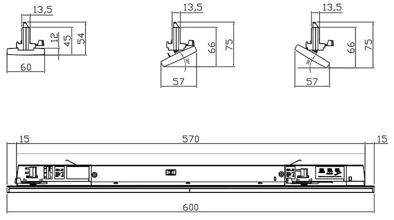 Műszaki adatok: 2021-es energiahatékonysági osztályok: n.rel. · Anyag: Acél, PMMA · Fényforrás típus: LED · Fényforrások száma: 1 · Fényszín: 3000 K · Fényszín (fényforrás): Melegfehér · Fényáram összesen: 3200 lm · Gyártói szín: Fekete · Méret, hossz: 600 mm · Méret, magasság: 54 mm · Méret, szélesség: 60 mm · Teljesítmény: 20 W · Védelmi osztály: I · Védelmi típus: IP20 · Üzemi feszültség: 230 V