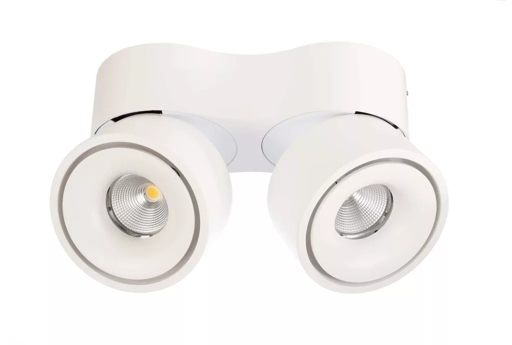 Felületre szerelhető mennyezeti lámpa, Uni II dupla, kerek, 20W, 3000 K, IP20, öntött alumínium, szabályozható, fehér