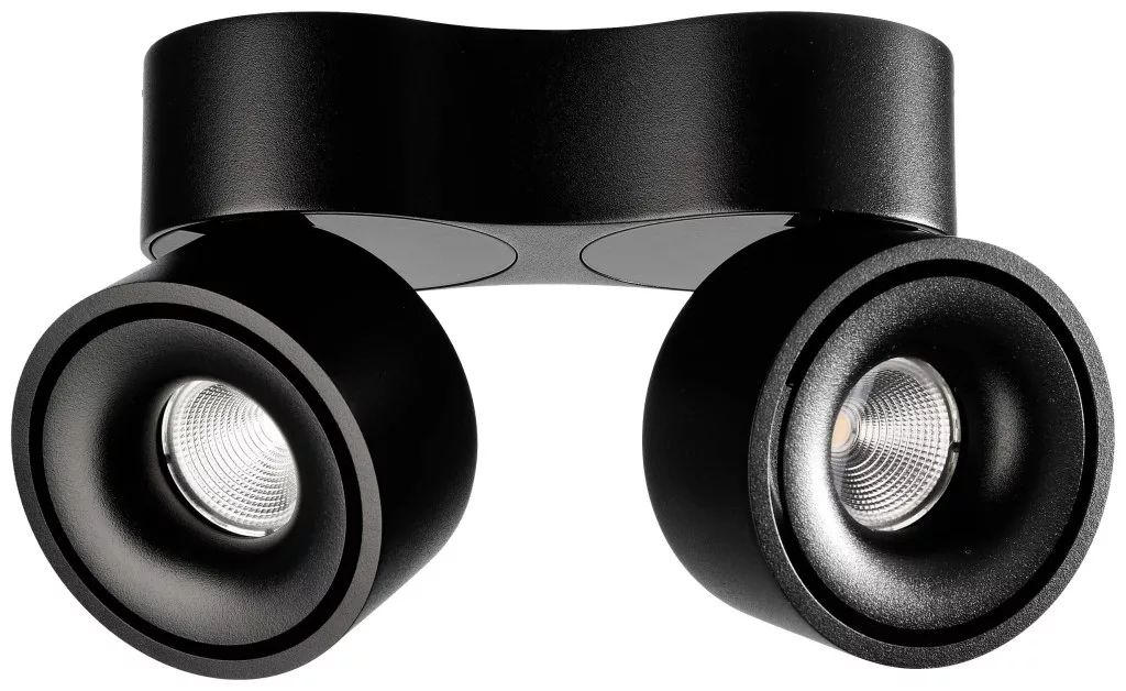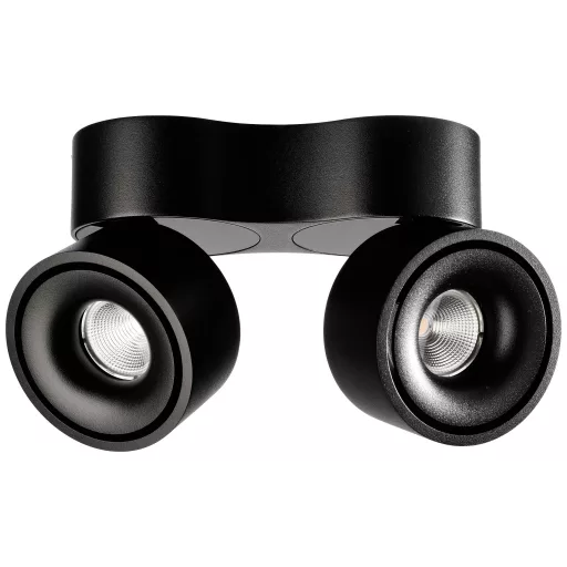 Felületre szerelhető mennyezeti lámpa, Uni II dupla, kerek, 20W, 3000 K, IP20, öntött alumínium, szabályozható, fekete
