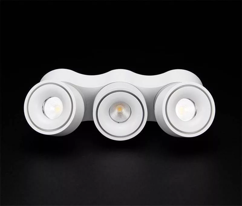 Felületre szerelhető mennyezeti lámpa, Uni hármas, kerek, 30W, 3000 K, IP20, öntött alumínium, szabályozható, fehér