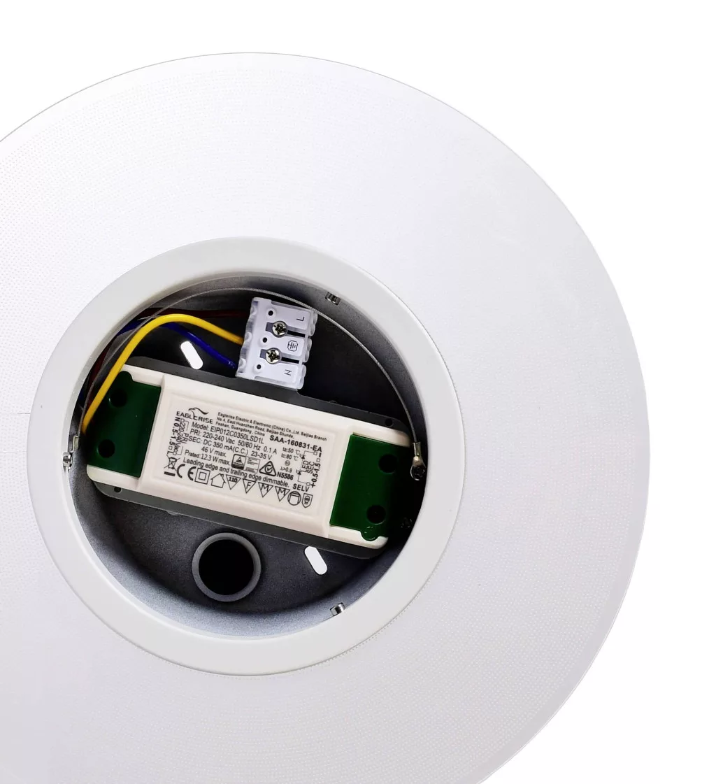 Műszaki adatok: 2021-es energiahatékonysági osztályok: F (A - G) · Anyag: Alumínium · Energiafogyasztás: 12 kW/1000 óra · Foglalat: Fixen beépített LED-es · Fényforrással: Igen · Fényszín: 3000 K · Fényszín (fényforrás): Melegfehér · Fényáram összesen: 1512 lm · Gyártói szín: Fehér · Helyiség: Gyerekszoba, Hálószoba, Nappali/étkező · Méret, magasság: 42 mm · Sugárzási szög: 120 ° · Tanúsító kód, EEK: 865374 · Teljesítmény: 12 W · További műszaki adatok: Csatlakozási lehetőség: bilincs · 2. anyag: műanyag · Optika 2: átlátszó / átlátszó · Tápegységek: LED tápegységgel · LED típus: SMD · LED forma: 2835 · Sugárzás eloszlása: 605 nm · Színvisszaadás Ra: 80 · Élettartam: 50000 óra · Kapcsoló ciklusok: 25000 · Indítási idő 60%-os fényáram mellett: 1¸0 s · Gyulladási idő: 0¸5 s · Vezérlés: elülső él vagy hátsó él · Védelmi osztály: II, IP20 · Átmérő: 290 mm · Üzemi feszültség: 220 V, 240 V
