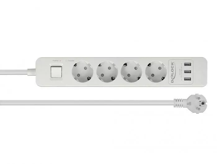 A Delock 4-utas elosztója USB töltési funkcióval alkalmas különféle eszközök kényelmes csatlakoztatására közvetlenül az asztalon. A beépített túlfeszültség-védelmi funkció megvédi az eszközöket zivatarok és áramkimaradások esetén.