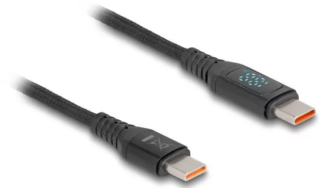 DeLOCK USB 2.0 gyorstöltő kábel USB Type-C™ dugó a PD 3.1 csatlakozóhoz 140 W, 1,20 m-es teljesítmény kijelzővel