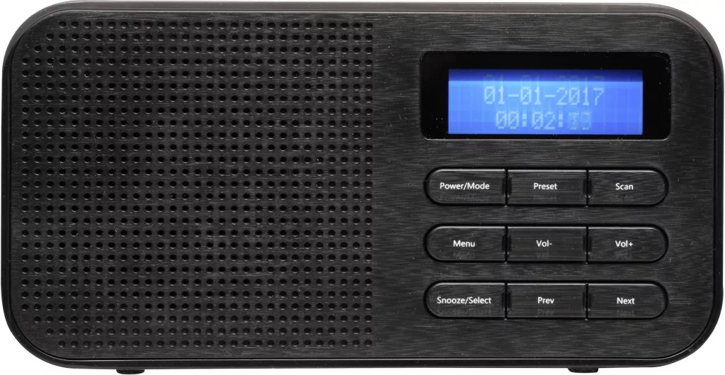 Digitális rádió kettős riasztási funkcióval és fejhallgató kimenettel.