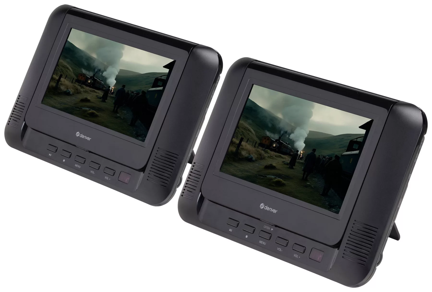 Dupla móka, dupla izgalom!Tapasztalja meg az egyedülálló szórakoztató élményt a Denver MTW-793 Mobile Twin DVD-lejátszóval. Az első 17,78 cm-es (7" ) képernyőn beépített DVD-lejátszó található, míg a második képernyőn pontosan azt láthatja, amit az első játszik. Merüljön el kedvenc filmjeiben, DVD-iben, DVD+ R/RW-jében, CD-iben, CD-R/RW-jében és JPEG-jeiben, és élvezze azokat szeretteivel. A beépített hangszórók gazdag és tiszta hangzást biztosítanak, amely magával ragad az eseményekben. Az AV-kimenet még egy külső TV-készülék csatlakoztatását is lehetővé teszi, hogy a szórakoztatást a következő szintre emelje. A fejhallgató-csatlakozással, az AV-bemenettel, az USB-csatlakozóval és az SD-kártyaolvasóval a lehetőségek széles skáláját kínálja külső eszközök csatlakoztatására. A beépített lítium akkumulátor körülbelül 2 óra lejátszási időt biztosít töltéssel, így megszakítás nélkül élvezheti a filmeket. A praktikus hordtáska megvédi a Denver MTW-793-at, és kényelmesen bárhová magával viheti. Duplázza meg a szórakozást a Denver MTW-793 Mobile Twin DVD-lejátszóval!