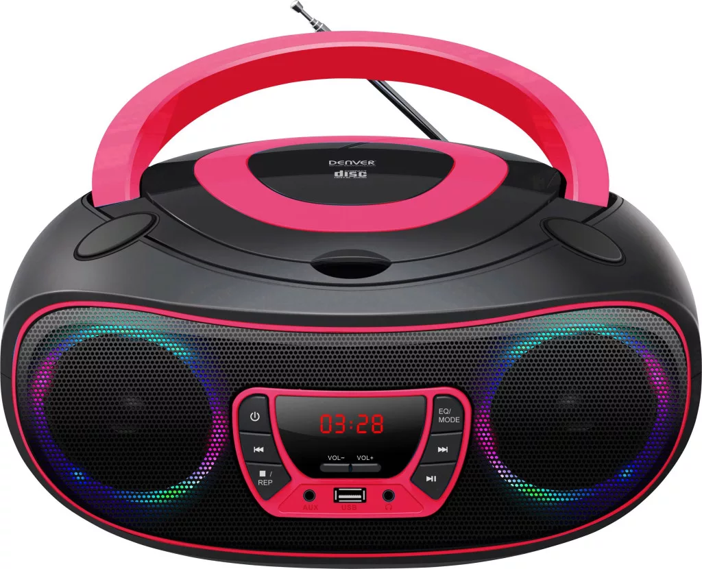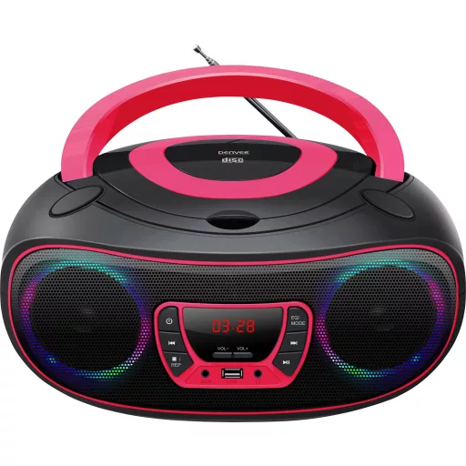 Műszaki adatok: Bemeneti csatlakozók: Audio, sztereo (3.5 mm jack), USB · Funkciók (HiFi): AUX, CD, USB, Bluetooth® · Gyártói szín: Rózsaszín · HiFi jellemzők: Hangulatfény · Kimeneti csatlakozók (számítástechnika/multimédia): Fejhallgató (3.5 mm jack) · Méret, magasság: 130 mm · Méret, mélység: 225 mm · Méret, szélesség: 261 mm · Rádió tuner: URH · Súly: 1.19 kg · Tápellátás: Hálózatról üzemeltetett, Elemekről üzemeltetett · Vezeték nélküli töltő funkció: Nem