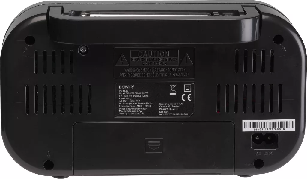 A denveri TR-51 egy elegáns FM rádió analóg hangolással. A klasszikus kialakítású, kiváló minőségű háznak köszönhetően mindenhol jól néz ki, és különösen könnyen használható a két forgatható vezérlőnek és az egyértelmű gomboknak köszönhetően. Akár a konyhában, a nappaliban, a hálószobában, akár az irodában dolgozik, a rádió mindig finom alakot vág, és bármilyen belső térhez illik. A beépített FM-rádiónak köszönhetően könnyen megkaphatja kedvenc állomásait. A rádió elektromos árammal vagy elemekkel használható.