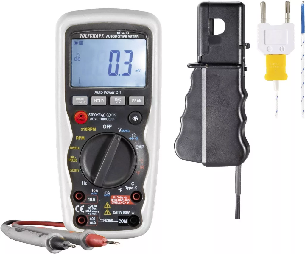 Masszív digitális multiméter külön mérési üzemmódokkal autós használathoz. Fordulatszámot lehet mérni induktív leszedővel gyújtáselosztós és anélküli motorokon, és ellenőrizni a gyújtási szöget. Hőmérsékletméréshez egy K típusú hőmérsékletérzékelő áll rendelkezésre. Forgó vagy feszültség alatti részeken való hőmérsékletméréshez opcionális érintés nélküli infra hőmérsékletmérő adapter kapható.