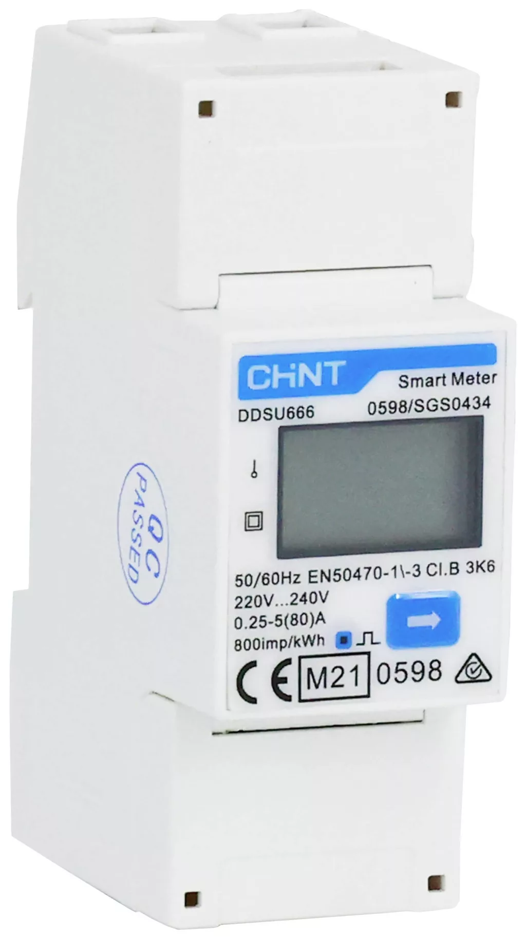 Digitális egyfázisú fogyasztásmérő 220/230V 5(80)A RS485 2P MID, Chint G DDSU666