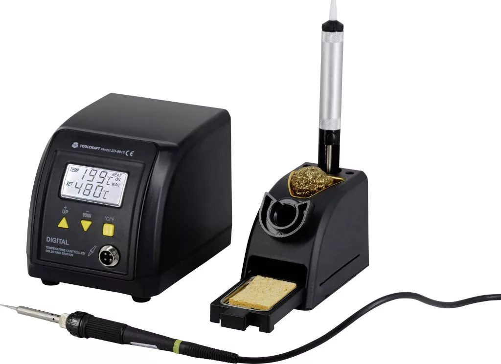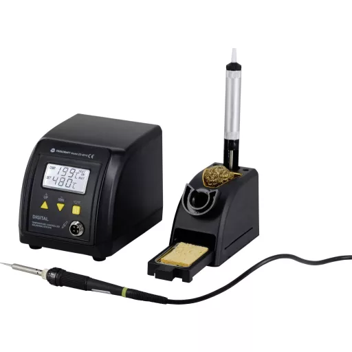Műszaki adatok: Forrasztópáka jellemzők: Tartóval,Ónszippantó pumpával · Hőmérséklet (max.): 480 °C · Hőmérséklet (min.): 160 °C · Kijelző (digitális/mechanikus/analóg): digitális · Méret, hossz: 175 mm · Méret, magasság: 130 mm · Méret, szélesség: 130 mm · Súly: 2.65 kg · Súly, megjegyzés: Tartalommal · Teljesítmény (max.): 60 W · Termék típus: Forrasztóállomás · Üzemi feszültség: 230 V