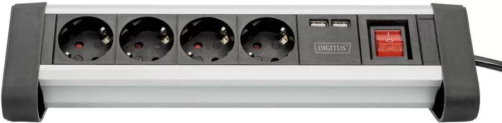 Digitus DA-70614 Elosztó kapcsolóval Alumínium,Alumínium ezüst,Fekete,Ezüst Védőérintkezős 1 db